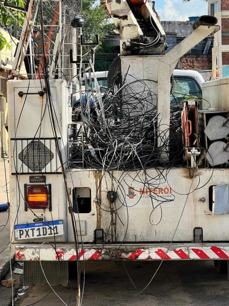 A Operação Caça-Fios segue avançando em Niterói com resultados expressivos para a segurança e a organização urbana da cidade. Entre janeiro de 2025 e março de 2026, foram registradas aproximadamente 2.300 demandas de atendimento por meio dos canais da secretaria, o que representa uma média de 16,2 ações por dia útil.